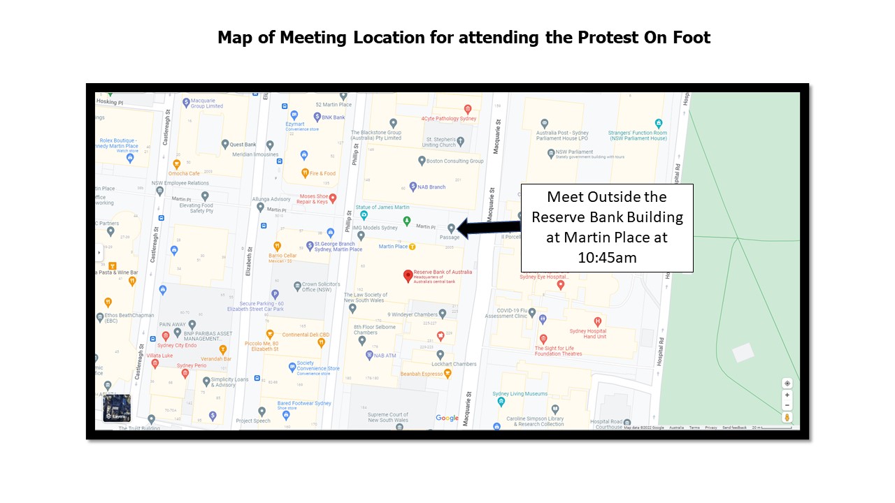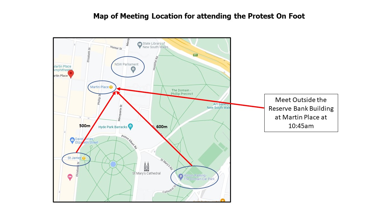 See map below for a closer look at our meeting location for attending the Protest by foot or Click here
